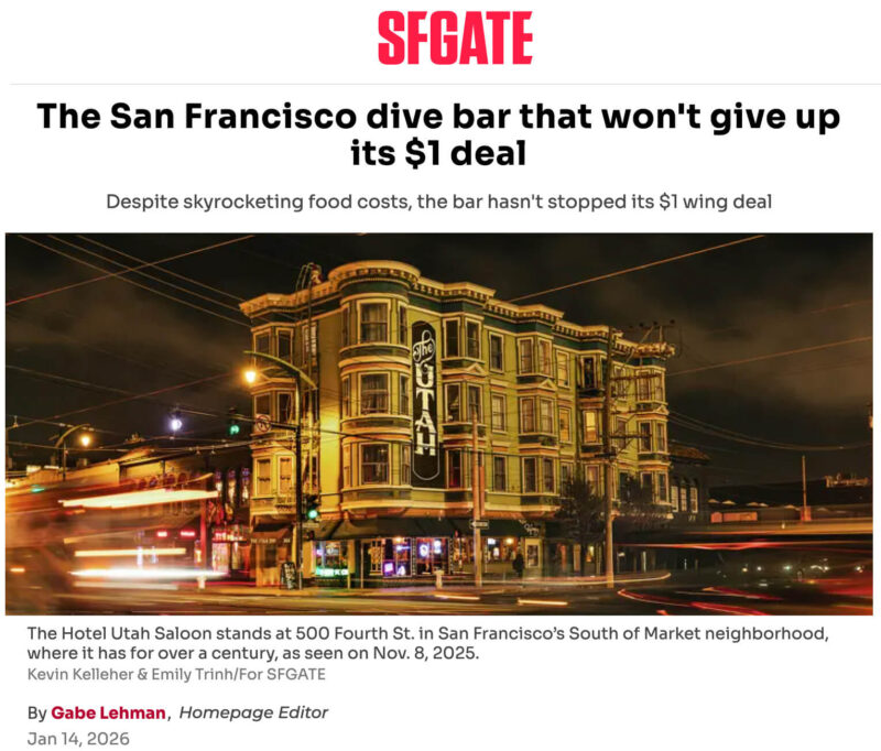 Built in 1908, The Hotel Utah Saloon has been a SOMA neighborhood hangout serving drinks, live music, and tasty food for almost 50 years. Stop by and experience this historic San Francisco watering hole and cultural icon.